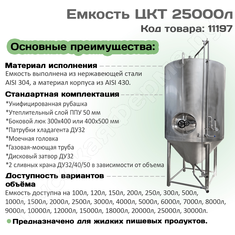 Производственная ёмкость ЦКТ для производства пива и кваса. Ферментационный танк (ЦКТ) – это термоизолированная емкость из нержавеющей стали с конусным дном.