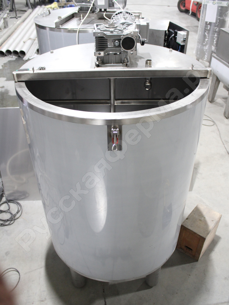 Термоизолированная пищевая емкость с мешалкой предназначена для накопления, хранения и приготовления жидкостей и смесей средней вязкости в пищевой, химической и парфюмерно-косметической отраслях промышленности. Имеет верхнюю двухсекционную крышку.
