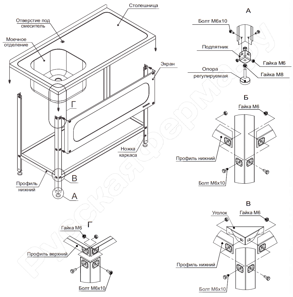 • Ножки – гнутый угловой профиль с дополнительными подгибами и базирующими пуклевками;